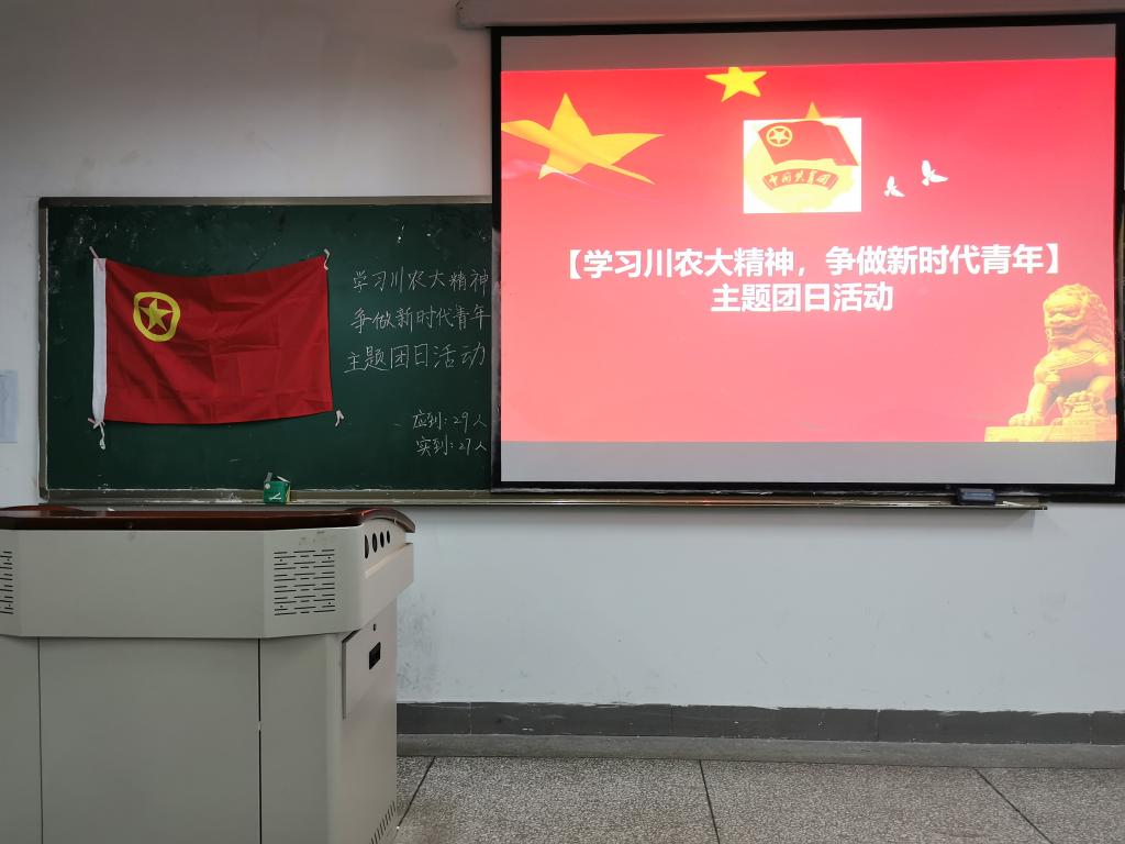 团歌唱毕,同学们通过观看相关视频学习“川农大精神”。“爱国敬业、艰苦奋斗、团结拼搏、求实创新”短短16个字的川农大精神,却凝聚着近百余年的历史积淀和千千万万川农大师生的拼搏付出。通过视频,同学们看到了老一辈川农人是如何的一步一个脚印地扎实前行,把曾经那个平凡普通甚至不被看好的的小小学校,打造成如今双一流的百强名校。