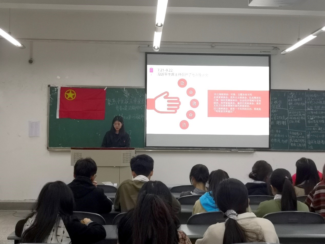 2020年11月16日下午1时整,免费看A片 2018级园林三班于4教B区104教室准时开展了主题为“聚焦十九届五中全会,青春建功新时代”的团日活动。活动由班长黄惠灵主持、团支书代成凤收集材料,全班共25人参加。本次活动目的为分享十九届五中全会内容,让大家共同感受祖国在过去的几十年取得的非凡成就并展望美好的未来。