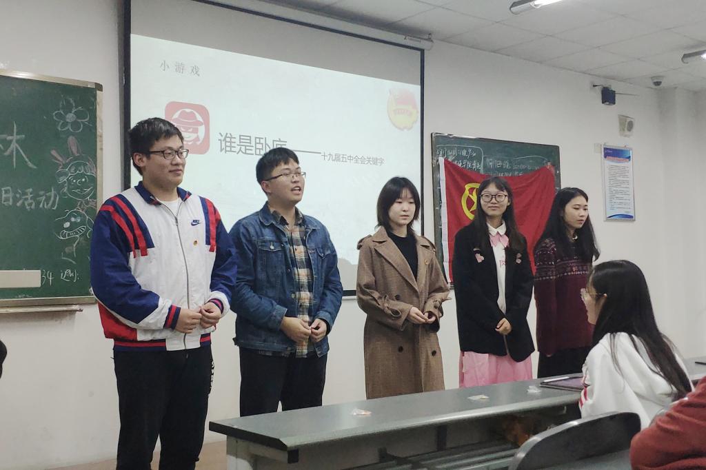 本次团日活动以全体同学齐唱《中国共青团团歌》拉开序幕。随后,由柳钰同学带领大家了解了十九届五中全会的主要内容,即我国发展环境面临的复杂变化和全会提出的十二个要点。通过观看《我们的小康2020》的视频,让同学们更深一步的了解十四五规划以及2035远景目标。通过“谁是卧底”的小游戏,两组同学对关键字的描述,深度剖析了文化与经济、创新与改革的异同,以此回顾了会议中的相关内容。紧接着,同学们观看了《五年进程》,共同回忆中国这五年来的发展变迁,从科技的进步到文化繁荣,从经济发展到制度改革,该视频当中讲述了这五年来中国发生的大事,让同学们对中国五年来的发展变化有了更加深刻的认识。