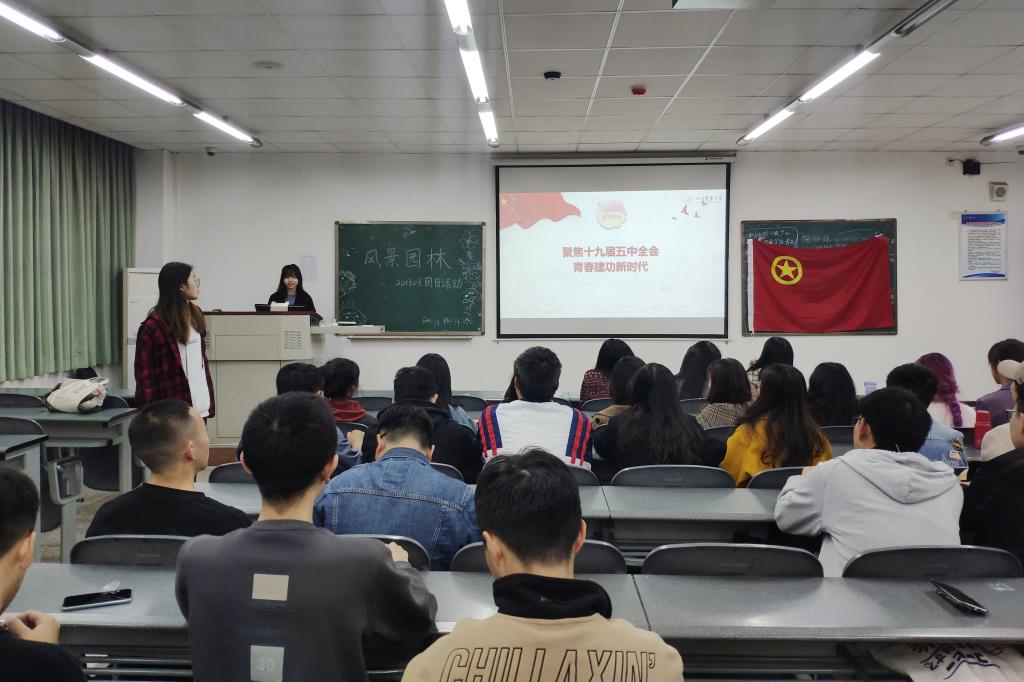 2020年11月17日晚8:00,风景园林201808班在4-B404举办了以“聚焦十九届五中全会,青春建功新时代”为主题的团日活动。本次团日活动通过丰富有趣的活动安排,让同学们充分了解十九届五中全会的主要内容,回顾“十三五”展望“十四五”,明确当代大学生在这一历史时期应当肩负的职责。