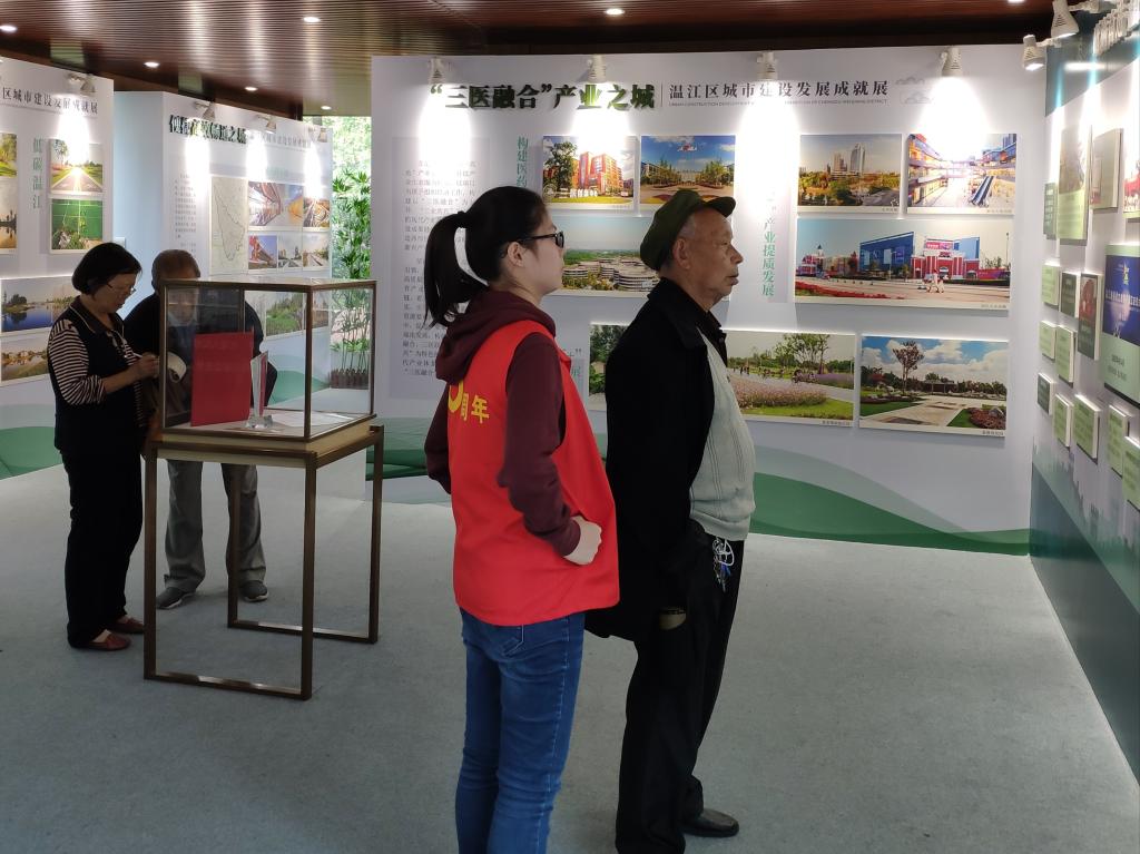 10月9日,由成都市温江区住房和城乡建设局主办的“温江城市发展成就展”正常展出。管理免费看A片 流动志愿者组织下的各院志者愿前往温江光华大道西花汀的展馆开始了一天的工作。
