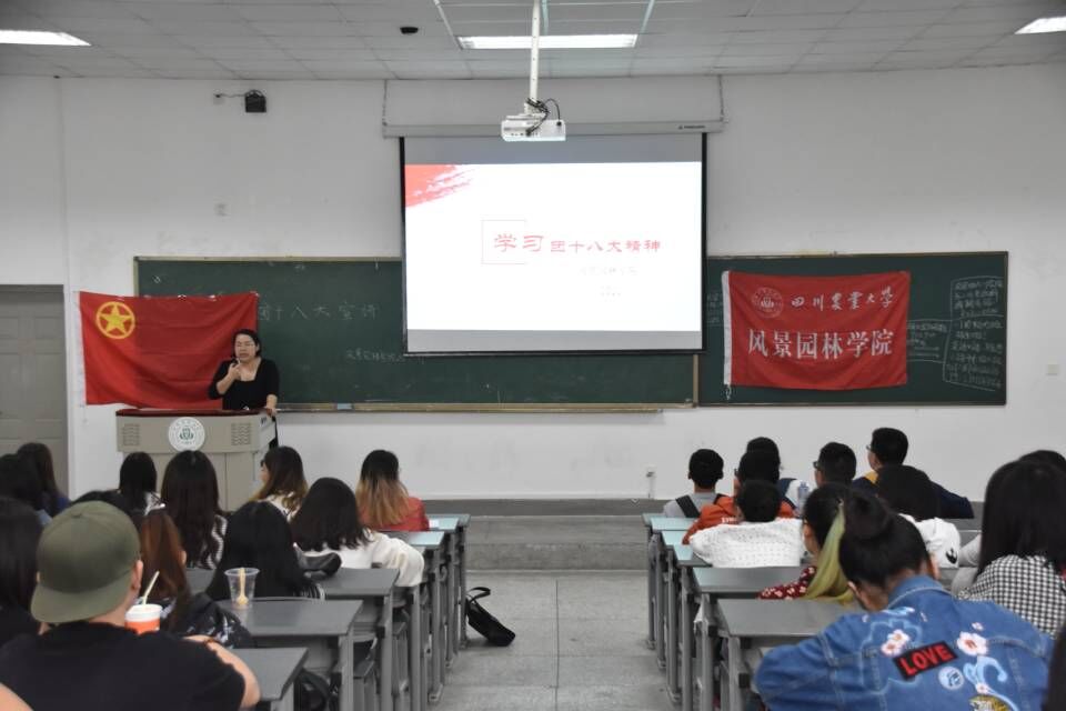 9月12日中午12:30分,于第四教学楼A区,党委办公室副主任、团委副书记朱玉老师给大家讲述了她对于团十八大内涵及精神的认知,朱玉老师从政治身份的认知出发,谈及政治素养与专业素养往往相辅相成、密不可分,提醒同学们政治学习绝不是泛泛而谈。在朱老师问及共青团的定义时,作为青年先锋队队长的郭玺同学发表了他对于“共青团”的认知——共青团团员们都是党的发展对象,讲到政治连续性一致性对于国家发展的重要性时,园林1702支部团干则踊跃发言,表示他心目中中华最盛在唐朝,而重现唐朝盛世、中华盛景,实现中华民族伟大复兴,便是我们当代大学生的责任与担当。在这堂充满互动、活泼轻松的团十八大宣讲活动中。团员干部们认知到十八大精神的学习是广大团员的必修课,及终身进行政治学习的必要性。