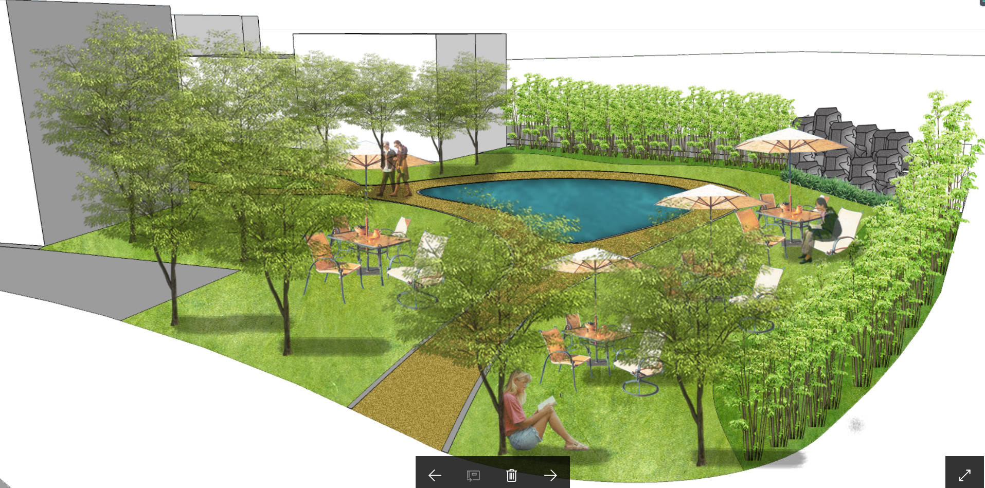 “左侧的那块可不可以标定为多功能用地?”“这样可能会影响到交通.”类似这样的讨论持续了大半个月。设计过程中,团队成员广泛涉猎文献,从国内古典园林到“禅”文化,大家都力争将先进理念融入设计作品之中。为了将效果表达的更加生动,团队部分成员采用纯手绘的方式将景观效果图展现在作品中,方便村民更好理解设计思路。在解决停车用地问题时,大家广开脑洞,提出移动式庭院这一新概念。移动式庭院既可休闲娱乐,又可通过移动变成停车场,为村民节省了很大的空间。